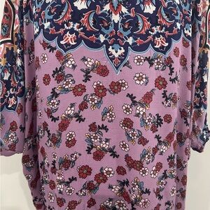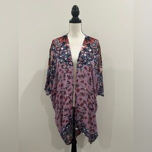 Time & Tru kimono. Multicolored floral pattern. Open in the center- no closure. 1/2 sleeves. Lightweight. Size L/XL.