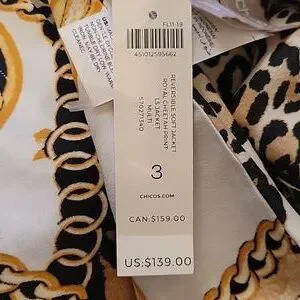 Chicos NWT reversible 3/4 length sleeve jacket sz 3