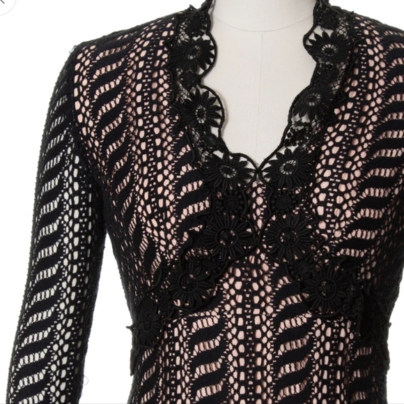 1970s Vintage Black Lace & Cream Overlay Dress | Size small