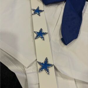 Custom rhinestoned like the real DCC outfits. This will be the IT costume this year. Comes with a set of Pom poms as well. Will ship next business day. Size small and XS has smaller stars