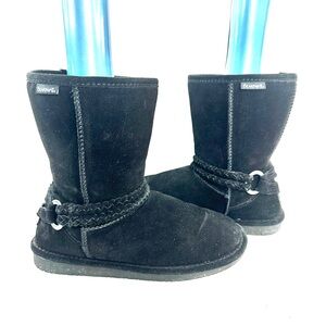 Bearpaw Adele Women Size 9 Wide Black Suede Boot Winter Braided Harness