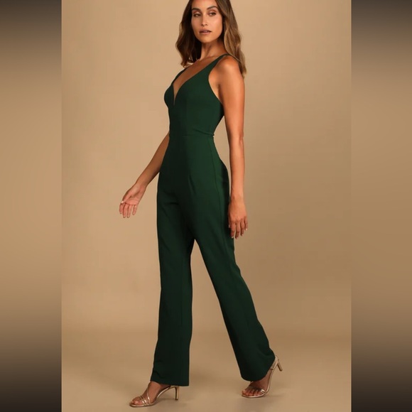 LULUS | Instant Icon Dark Green V-Neck Sleeveless Jumpsuit