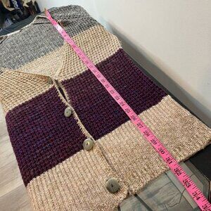 Free People Women’s Medium Deep V Colorblock Cardigan Mohair Blend Chunky Knit