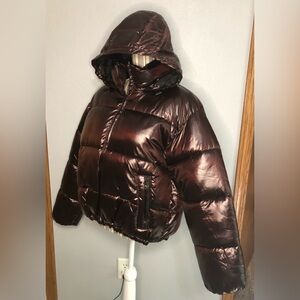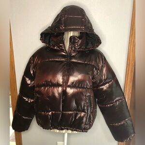 American eagle shiny metallic brown/burgundy puffer coat women’s size M, in excellent condition, no visible flaws.
