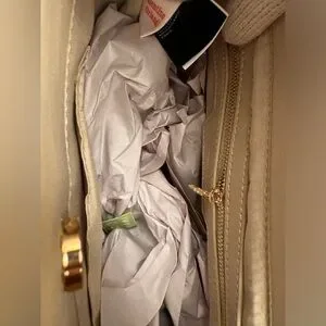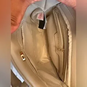 New with tags Valentino Orlandi light taupe clutch or a crossbody strap can be attached. Nice gold tone hardware. Beautiful purse!