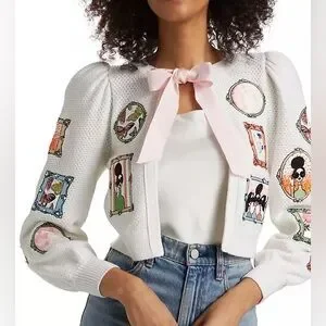 Alice + Olivia Kitty Stace Face Frame Wool Blend Cardigan
