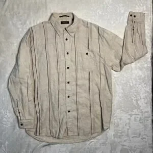 Tommy Bahama Island Soft Linen Shirt Mens M Button Up Long Sleeve Brown Beach