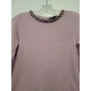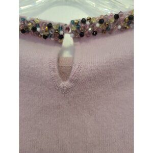 Magaschoni Cashmere Womens Sweater Beaded Trim Lavender Small