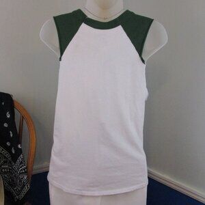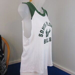Women's USF workout tank, 100% cotton lightweight knit with the classic USF logo in green on white. Raw unhemmed arm holes. In very good gently worn condition. Sadly outgrown