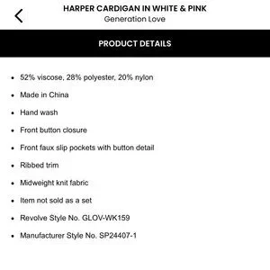 This is such a cute and sexy cardigan by Generation Love, perfect for your next social gathering!! Pink and white💗