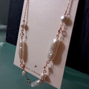 ONLY **2** LEFT!!! NEW!!! LC LAUREN CONRAD Romantic Rose Gold Pearl/Clear CZ Stones Chain Necklace**Unique Design on this Necklace! Rose Gold Necklace has Round and Oblong Oval Shaped Pearls with Round Clear CZ Stones Stationed on the chain! Such a Feminine Look you get with this one!**Necklace is 18" Long/Lobster Claw Clasp**NEW ON HANG TAG!