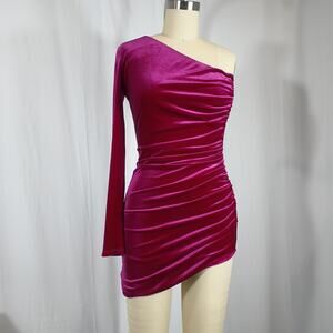 Nbd Ginnie Mini Dress Size XS with fully lined, hidden side zipper closure, one-shoulder styling, velvet fabric.