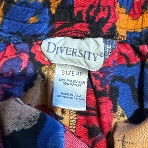 Made in USA. Size 4p by Diversity. Has pockets! Side button. Overall very good vintage condition. See photos for measurements. The back band does have stretch.