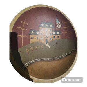 Vintage Folk Art Primitive Hand painted colonial americana bowl wall home décor