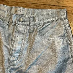 NWT Universal Thread 90s Baggy Metallic Silver Cotton Jeans in Women’s 0 Long. Featuring a relaxed fit at the hip and thigh, 5 button-fly closure, and non-stretch, 100% cotton fabric. Stylish and brand new with tags, these metallic silver jeans offer a trendy, retro-inspired look.