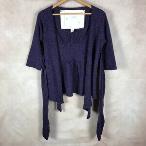 Birds on a Wire ANTHROPOLOGIE Wool Blend Wrap Sweater Purple