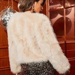 Apricot Preppy Womens Double Open Front Fuzzy Coat