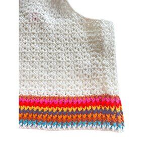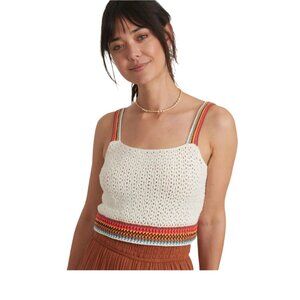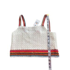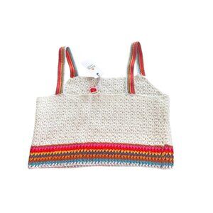 NWT Marine Layer $118 Crochet Crop Top W's XS Caro Tank White Rainbow Trim