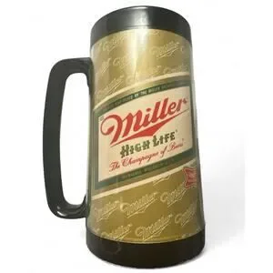 - Vintage Thermo-Serv insulated beer mug featuring Miller High Life "The Champagne of Beers" branding.
