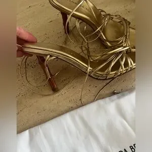 Veronica Beard Cabot strappy metallic ankle strap sandals in gold size 7