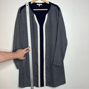 Skies are Blue Navy Blue & White printed dress shift dress SIZE XS boho office casual