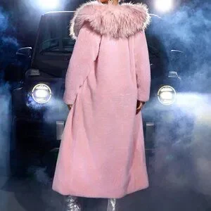 Pink Preppy Women's Long Faux Fur Coat With Pockets