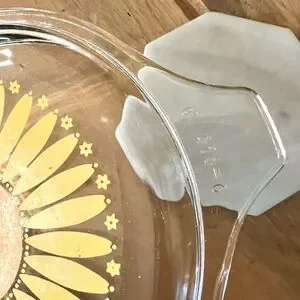 Vintage 1969 Sunflower Daisy Pyrex glass lid in excellent condition.