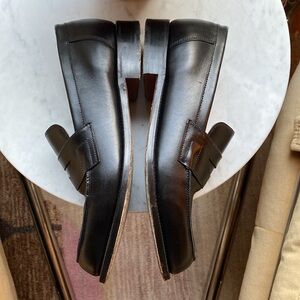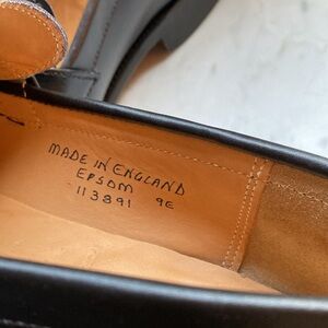Epsom is a classic penny loafer made on our 20E loafer last which has a versatile smart preppy toe shape, dressy but casual. Epsom has a low slung butted apron seam that follows the contours of the last. Made from polished black bookbinder Epsom has a tonal flat leather welt and double Riki leather sole. The Riki sole has the added benefit of rubber pods on the forepart and heel for exceptional grip. Epsom is made skin to box in the Grenson factory.