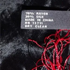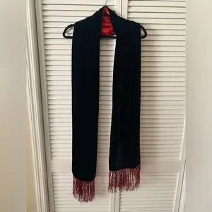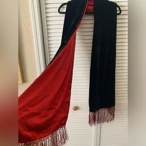 Beautiful Black Velvet, Red Silk Wrap with Red & Black Fringe