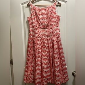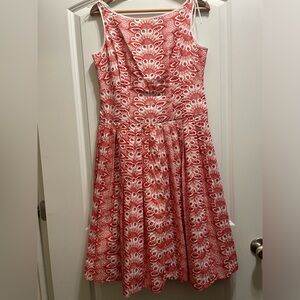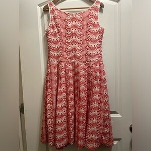 Brooks Brothers Embroidered Red Dress Size 6 Fit And Flare
