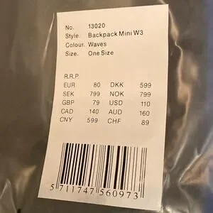 NWT Rains Backpack Mini Blue Waves Adjustable Straps Zippered Pockets Unisex