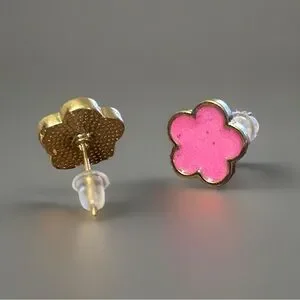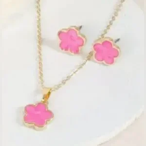 The set includes a pair of earrings and a necklace, both featuring a gorgeous pink leaf design. The gold tone of the earrings and necklace adds a touch of glamour to any ensemble.