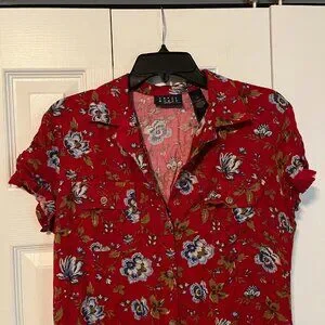 Short sleeve dress by Crazy Horse (a Liz Claiborne Company). Size 10. 100% Rayon. 48 inches from shoulder to hem.