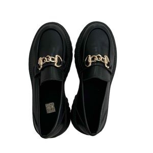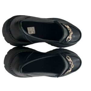 Lug Sole Loafers Black Gold Chain Embellished Chunky Sole Polished NWOT Size 40