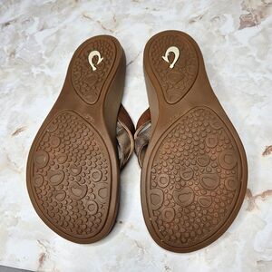 Olukai Kaekae sandals size 7 Leather Flip Flops Sahara Bubbly Golden