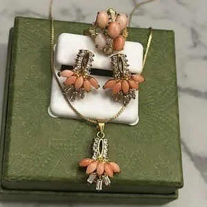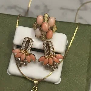 Coral and gold Jewelry Set
