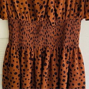 Women’s size medium by She + Sky. Smocked waist mini dress in cheetah print with tiered skirt. In good preowned condition