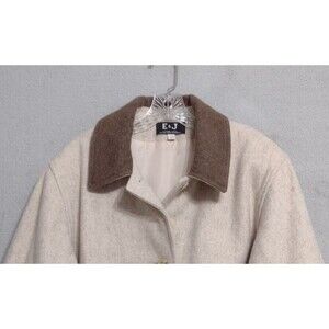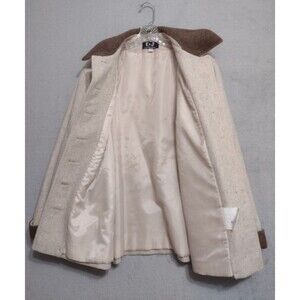 VTG Wool Womens Coat- Embroidery Bears- E&J/LA Mode- Sz L- Oatmeal- Canada- NICE