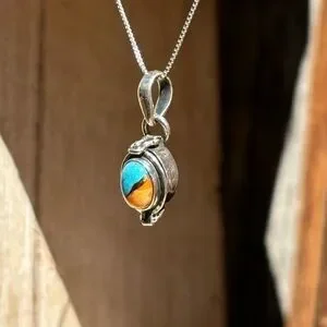 Genuine composite of spiny oyster and blue Mohave and set in solid 925 sterling silver poison pendant necklace