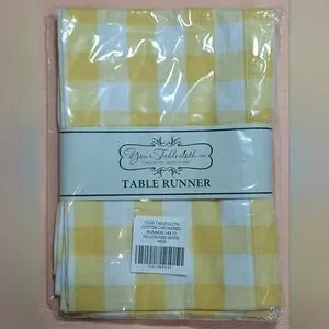 NWT YOUR TABLECLOTH table runner. Yellow and white checkered table runner. Suze 14×72