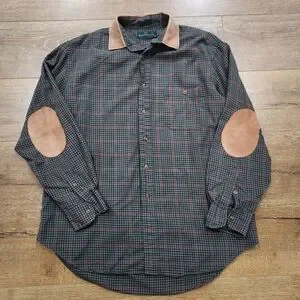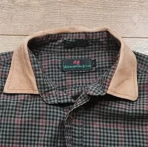 Vtg Abercrombie and Fitch men's long sleeve flannel plaid shirt lrg elbow patch