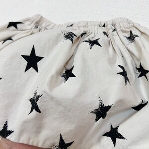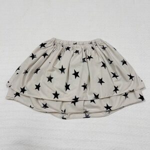 This is a J. Crew CREWCUTS Girls cream and black star printed tiered skirt, it would be great for the holidays, especially for a photoshoot, or for everyday adventures. This piece has some stains as pictured but because of its busy pattern it is not too noticeable.