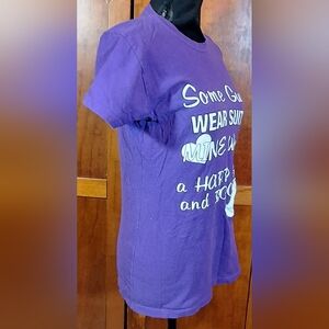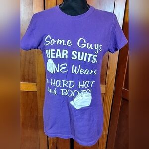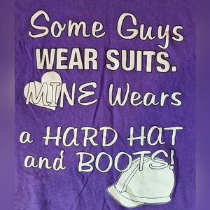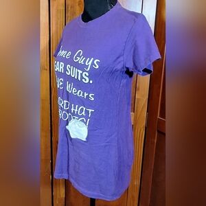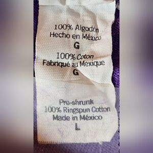 TULTEX t-shirt, purple with white lettering. Excellent condition, although the hat does have some cracks, as shown in photo. Size L