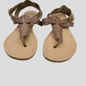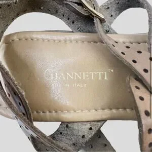 A. Giannetti T-Strap Sandals Womens Size 10 Caged Ankle Strap and Gold Hardware