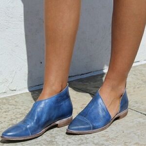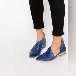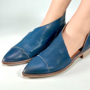 Free People Royale Flat Leather Cut Out Shoe in Indigo