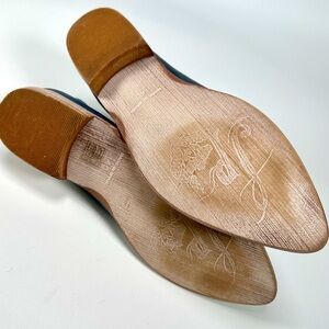 Closed toe version of FP fave Mont Blanc Sandal, these leather flats are made with the finest Spanish craftsmanship. Leather flats feature side cutouts and a slight stacked heel.