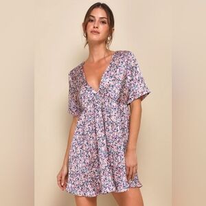 Excellent used condition Express Yourself Blush Pink Floral Print Satin Babydoll Dress from Lulu's. Size XS.