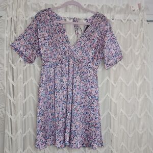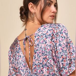 EUC Lulu's Blush Pink Floral Print Satin Babydoll Dress
