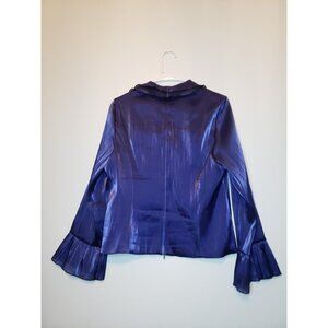 Dressbarn Collection Womens 10 Jacket Top Blue Shiny Long Ruffled Sleeve V Neck