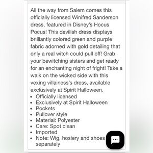 Disney Spirit Halloween Hocus Pocus Winifred Sanderson Size Tween Medium - See Photo for Measurements EUC